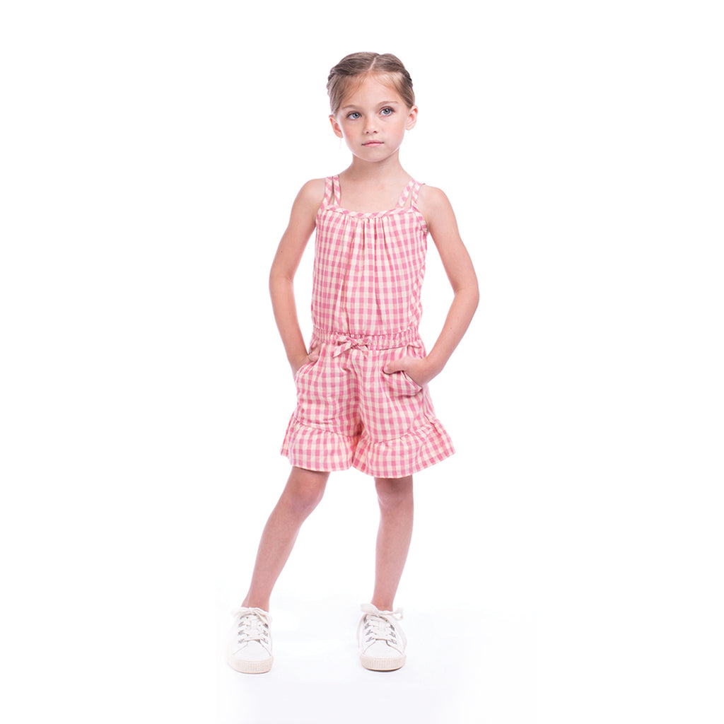 Comfy woven A line summer dress for girls. Featuring double straps and hem ruffle. The dress is fully lined.