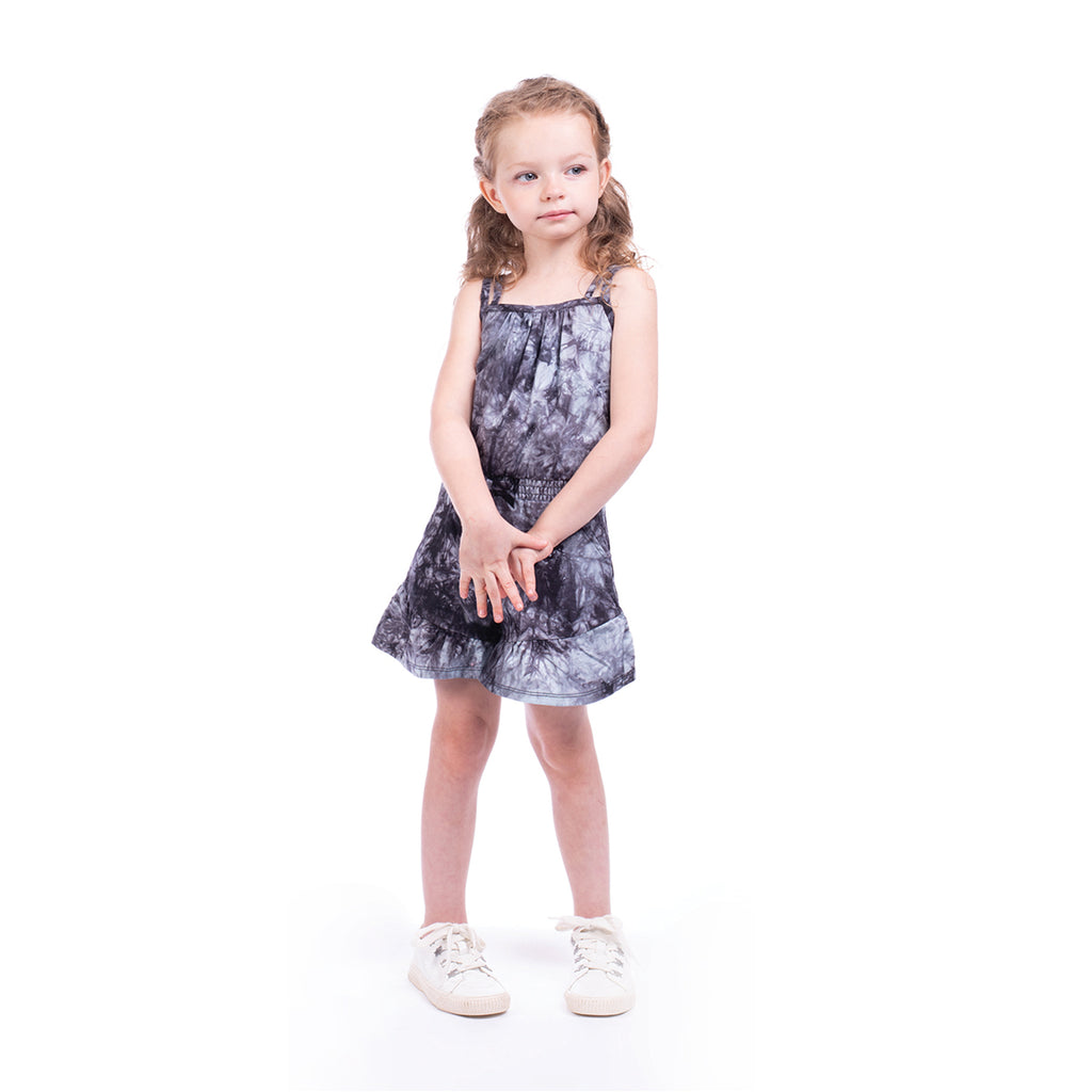 Comfy woven A line summer dress for girls. Featuring double straps and hem ruffle. The dress is fully lined.